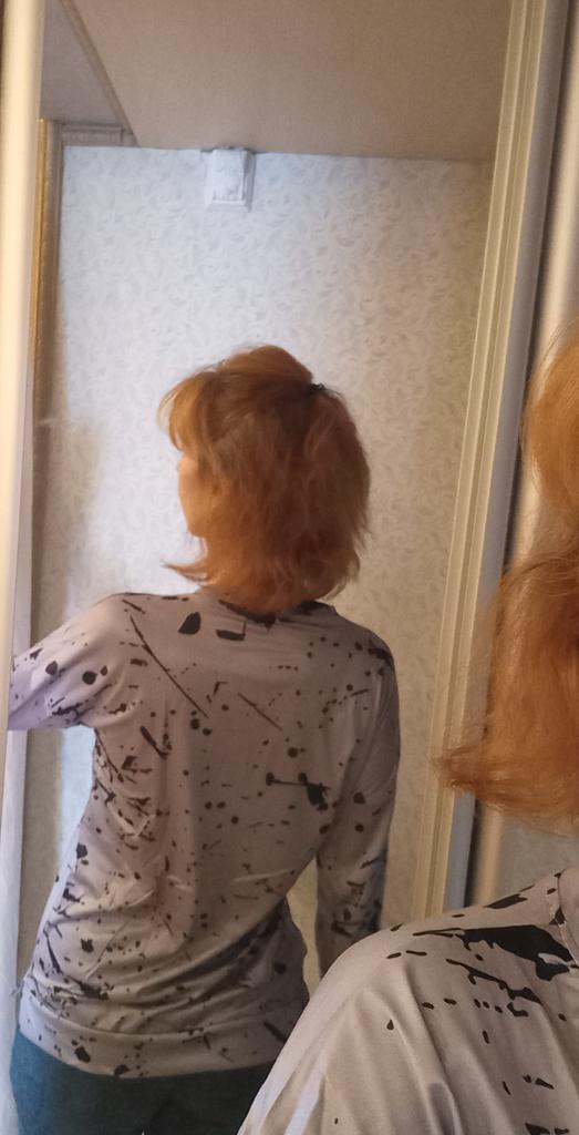 Wygląda bardzo dobrze. Tkanina dość cienka ale jedwabiście lekka. rękawy trochę długie.