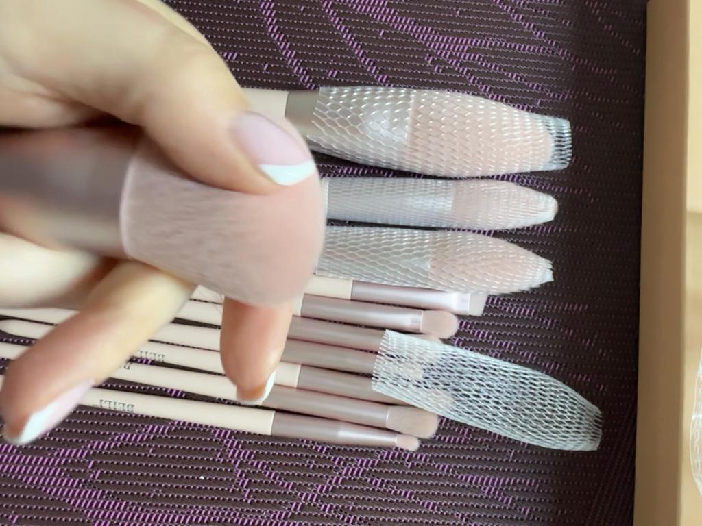 Pędzelki są bardzo ładne, szczególnie duże pędzelki były w siateczce, co jest bardzo miłe. Na pewno zamówię jeszcze jeden taki zestaw🩷Zamówienie przyszło na czas i bez wad.