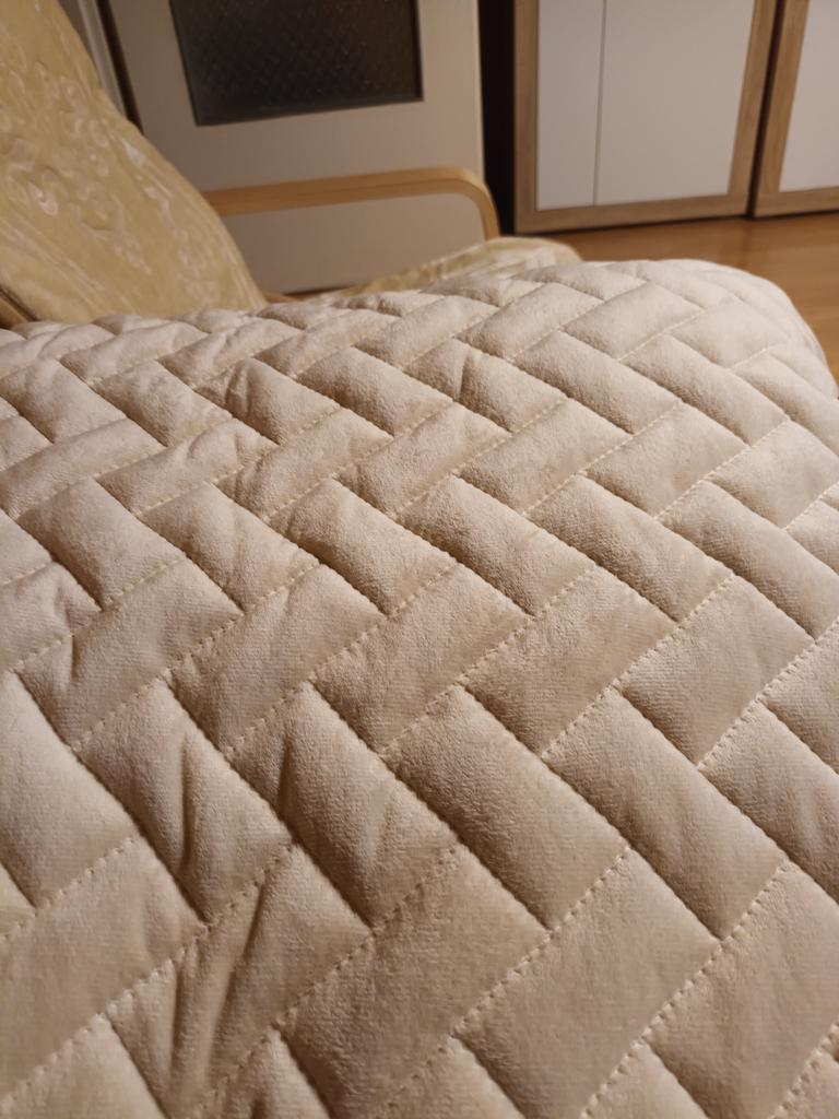 Pokrycie kanapy jest wg mnie ładniejsze niż na zdjęciach portalu. Jakość wykonania bardzo dobra. Materiał bardzo miły w dotyku. Kolor jak na zdjęciach portalu. Lewa strona pokrycia ma fakturę antypoślizgową co nie pozwala pokryciu na przesuwnie się. Super produkt. Polecam z całego serca.