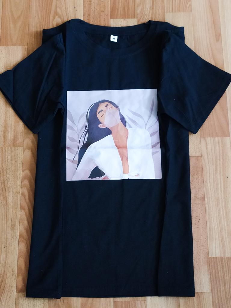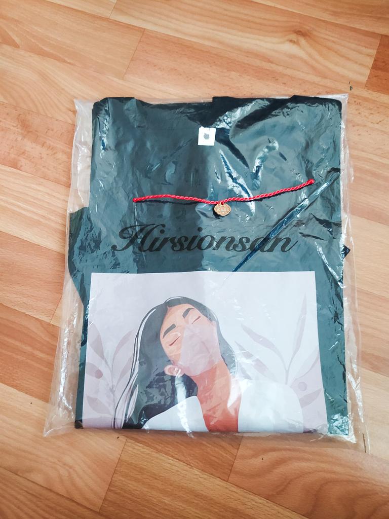 Bardzo ładna koszulka 🤎 Koszulka bardzo mi się podoba. Projekt jest również wyjątkowy. Niestety w koszulce była już dziura, co widać na zdjęciu łańcuszka. Dlatego obowiązuje odliczenie gwiazdek ⭐️⭐️⭐️⭐️ Wysyłka do Ameryki trwała około 30 dni.