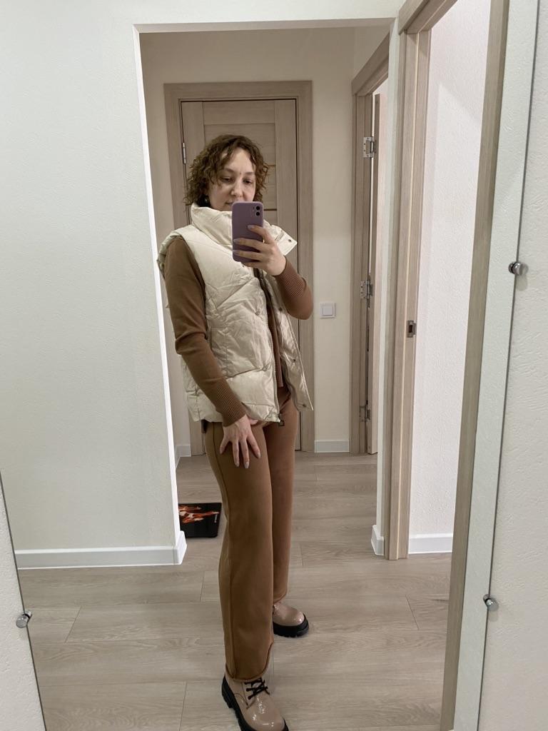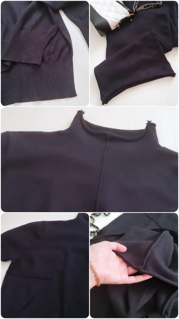 Garnitur nie jest zły. Spodnie są długie, myślę, że nie da się ich skrócić, bo są z dzianiny. Szyja nie wygląda schludnie. Nie podobał mi się kolor. Nie warte swojej ceny.