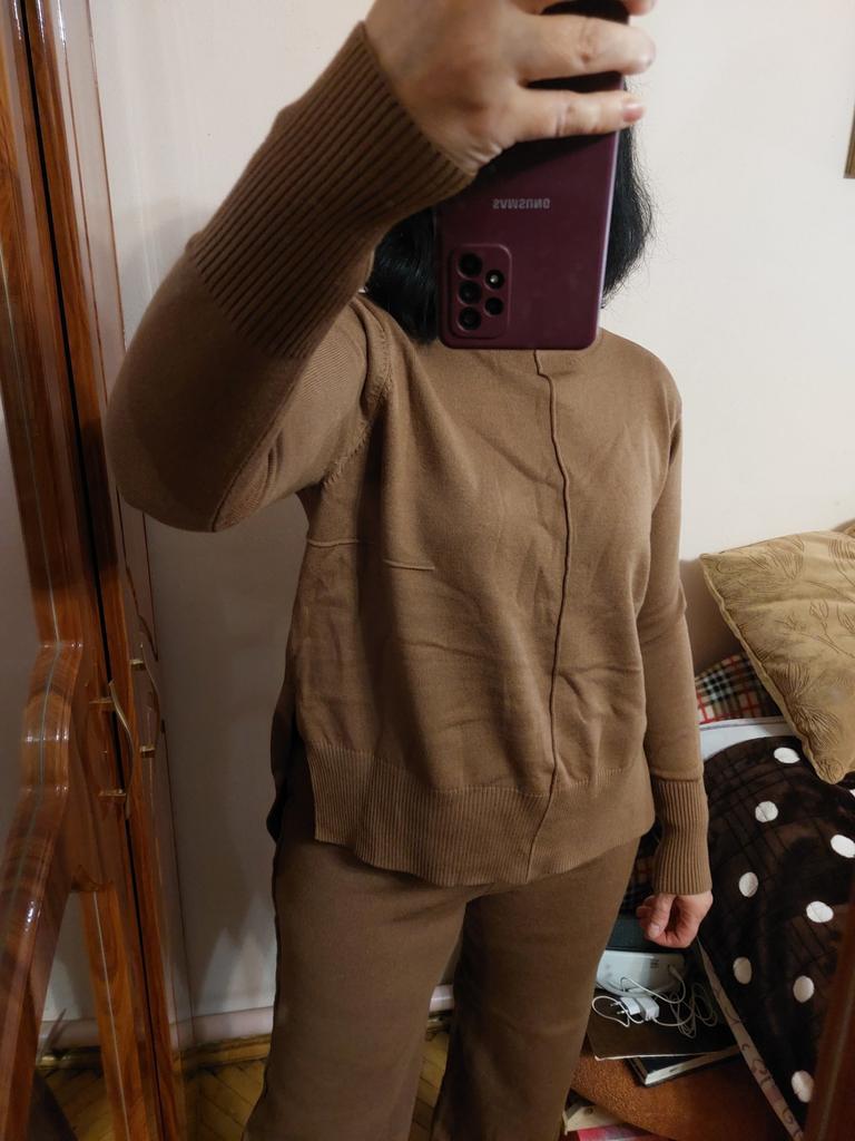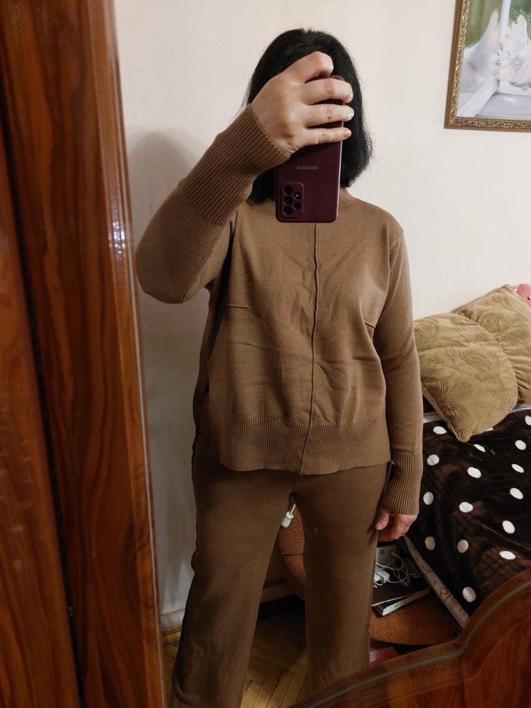 Absolutnie cudowny zestaw!! 🧡 🌟 Bardzo wysoka jakość materiału 🌟 Bardzo dobrze wykonane i wykończone szwy 🌟Kolor pokrywa się z tym na zdjęciach prezentacyjnych 🌟 Nadaje się na sezon jesienno-zimowy 🌟 Specjalny i luźny krój 🌟 Rozmiar: zazwyczaj noszę ubrania w rozmiarze XS, a ten zestaw jest na mnie trochę za duży, ale czuję się w nim wyjątkowo dobrze ubrana Polecam z miłością! 🧡