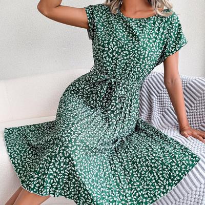 2022 elegancka stójka z kwiatowym nadrukiem szyfonowa sukienka z pełnym rękawem moda damska sukienki wiosna-line długa plisowana sukienka 3603 50