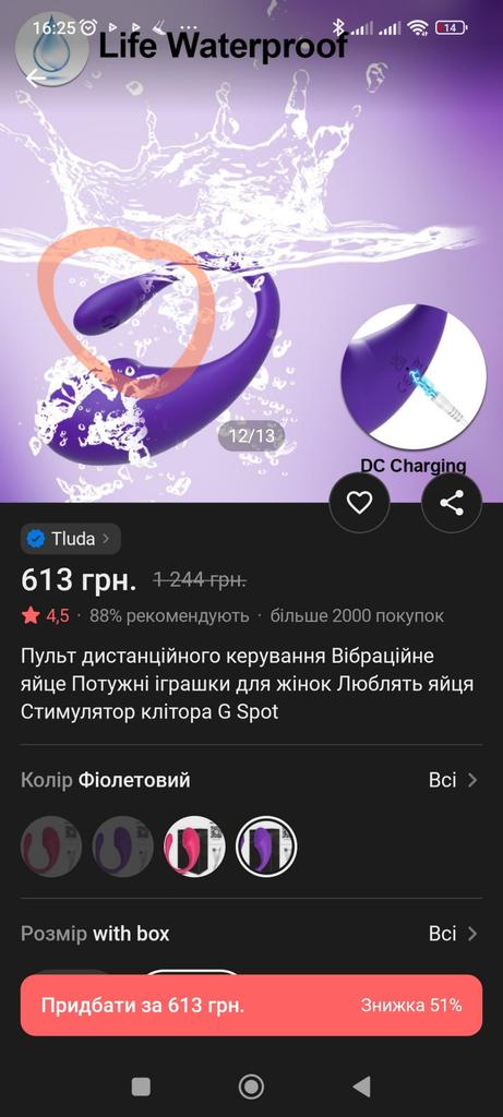 Zabawka przyszła razem z innymi zamówieniami, więc nawet jakbyś chciał to nie widziałeś co tam jest) Przyszło dokładnie to co zamówiłem: kształt, kolor, pudełko. Jak na swoją cenę zabawka jest rewelacyjna! Potężny, wiele trybów. Nie powiem, że jest bardzo głośno, ale jeśli ktoś jest w pobliżu w pokoju, to usłyszy. Przyszedł naładowany, ładowanie działa, łatwe połączenie przez bluetooth, można słuchać muzyki przez YouTube Music i będą wibracje) Po umyciu też wszystko działa, myślę, że można grać podczas kąpieli😏