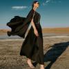 Odzież damska Czarna satynowa peleryna z okrągłym dekoltem i kryształkami Luźna szata muzułmańska