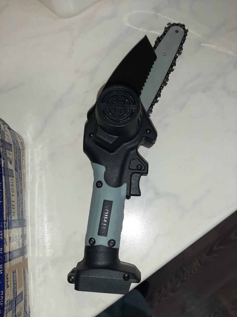 Piła nie jest zła, mocy jest wystarczająco dużo, bateria rozładowuje się po 25-35 minutach pracy! Podczas pracy łańcuch należy okresowo smarować i napinać. Podciąganie śrubokrętem jest bardzo niewygodne i kiepskie! Lepiej ciąć cienkie gałęzie i kłaść nacisk lub przytrzymywać gałąź, aby piła nie szarpała w przód i w tył. Idealnie przycinaj pnie o długości 5-10 cm, a jeśli wykonujesz również ruch jak przy piłowaniu piłą ręczną, to cięcie jest jeszcze lepsze i szybsze. Robią mi adapter do normalnych akumulatorów, wtedy będzie super