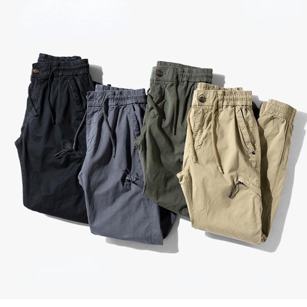 Męskie spodnie z solidnej bawełny Letnie, oddychające spodnie w jednolitym kolorze Casual Fitness z kieszeniami