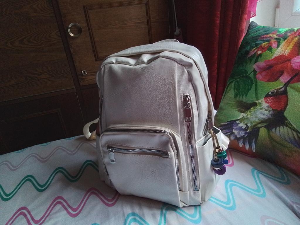 Plecak bomba! Wszystkie zamki działają, szwy są równe, pojemność godna.. W środku też kieszeń i ukryta na zamek. Ogólnie polecam. Jest zapach, położyłam na balkonie.
