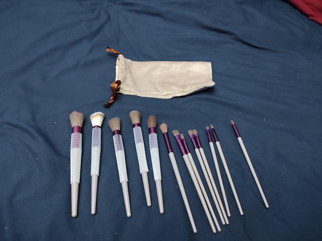 Dobre pędzle w ładnej torebce, strasznie śmierdzą.. Ale pamiętam i ok.. Trochę nitki wystaje z torebki