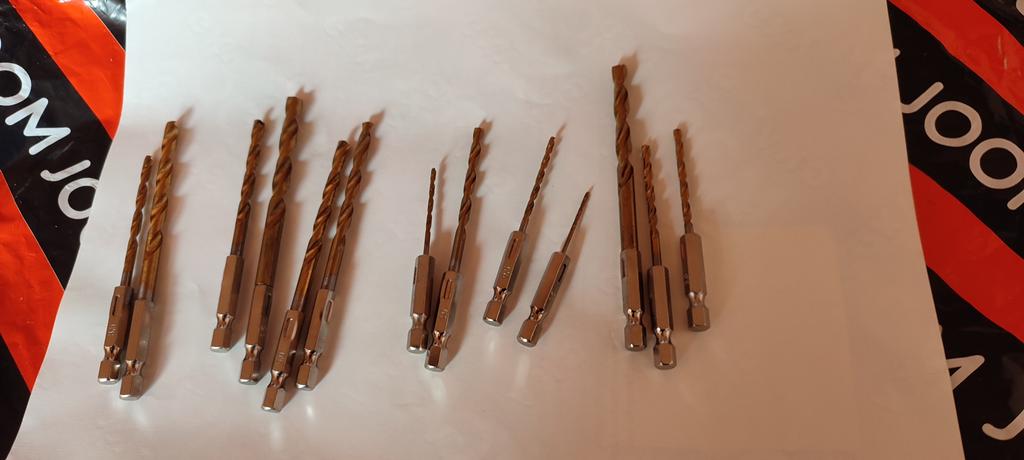 Na pierwszy rzut oka wszystko wygląda dobrze. Ale ostrzenie prawie wszystkich wierteł jest bardzo słabe, zwłaszcza przy 4 mm. i do najmniejszych. Na samej powierzchni tnącej skorupy i otworów. Być może nadadzą się do wiercenia w plastiku i drewnie, jeśli spróbujesz je naostrzyć. Nie polecam kupować.