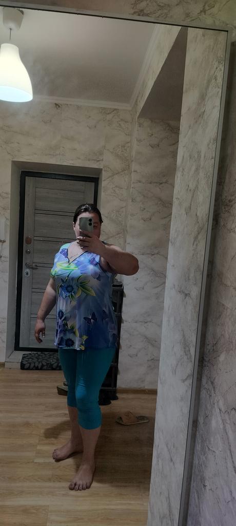 Aha, a góra jest w sam raz do legginsów, również cienka i delikatna, podoba mi się rozmiar, pasuje na moją 52.