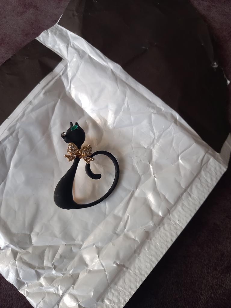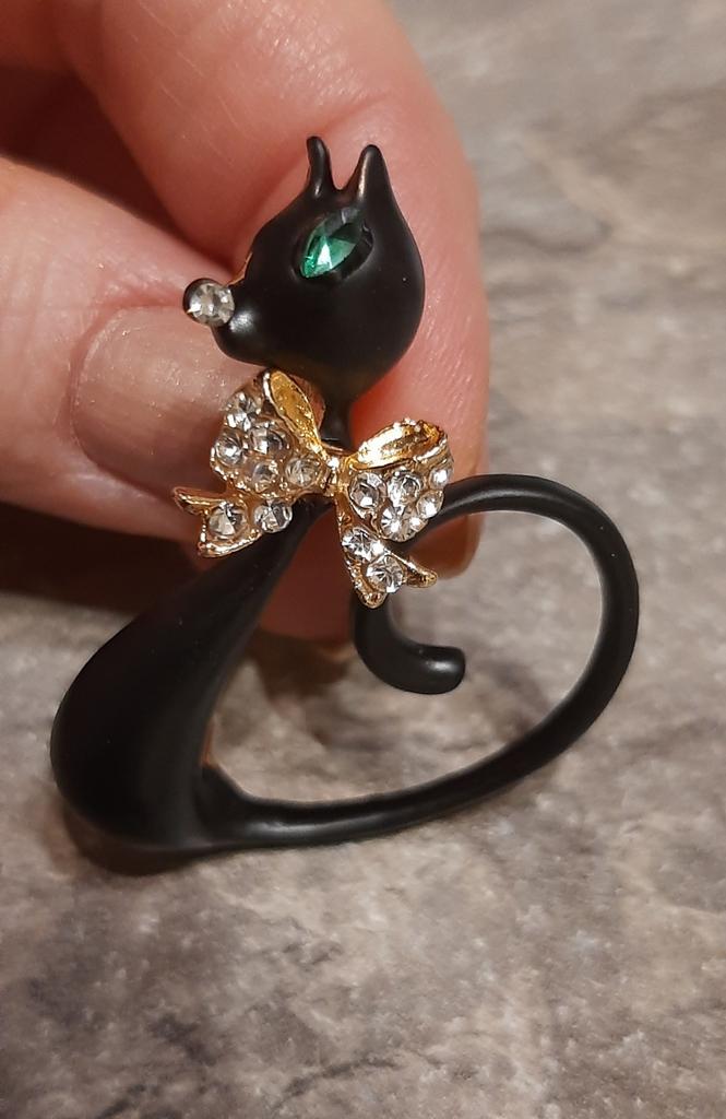 Ta piękna broszka w kształcie czarnego kota, bardzo miło na nią patrzeć