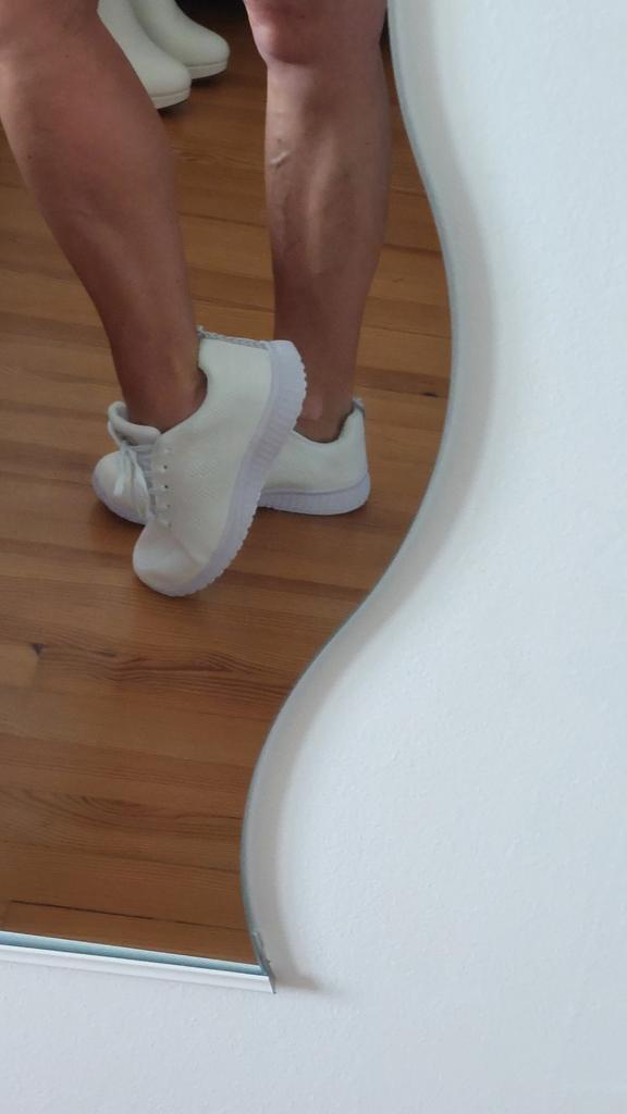 Od tyłu wyglądają krzywo: jeden tenisówka nie stoi poziomo na powierzchni. I był silny chemiczny zapach, który zniknął w ciągu dwóch tygodni.