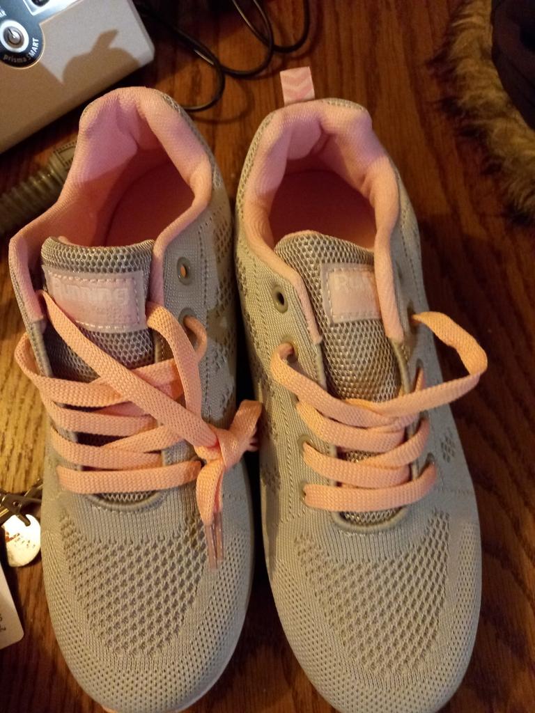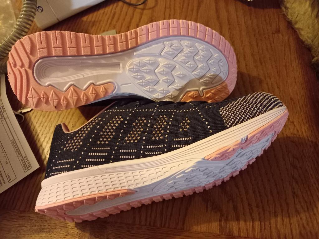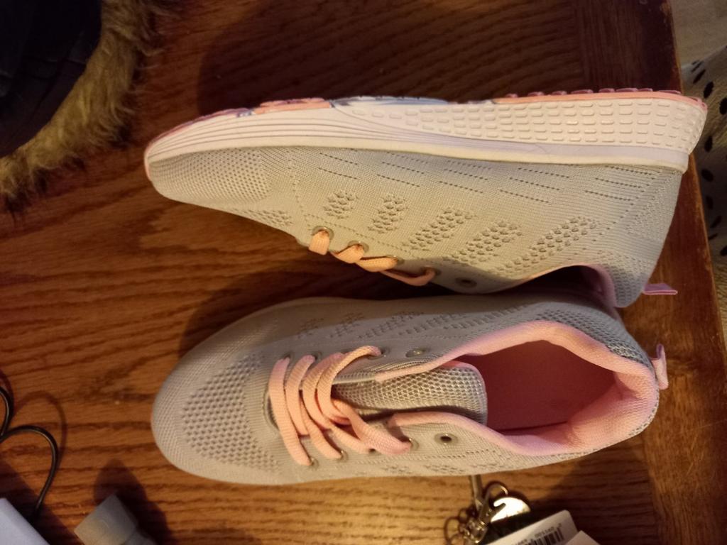 Kupiłam tenisówki w kolorze szarym i różowym w rozmiarze 38. Idealnie pasuje na nasz rozmiar 37. Odpowiada siatce wymiarowej. Bardzo lekkie, idealne na siłownię lub na lato.