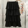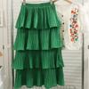 Qooth Wiosna Lato Moda damska Warstwowe spódnice z wysokim stanem Casual Solid Color Cake Spódnica QT1683