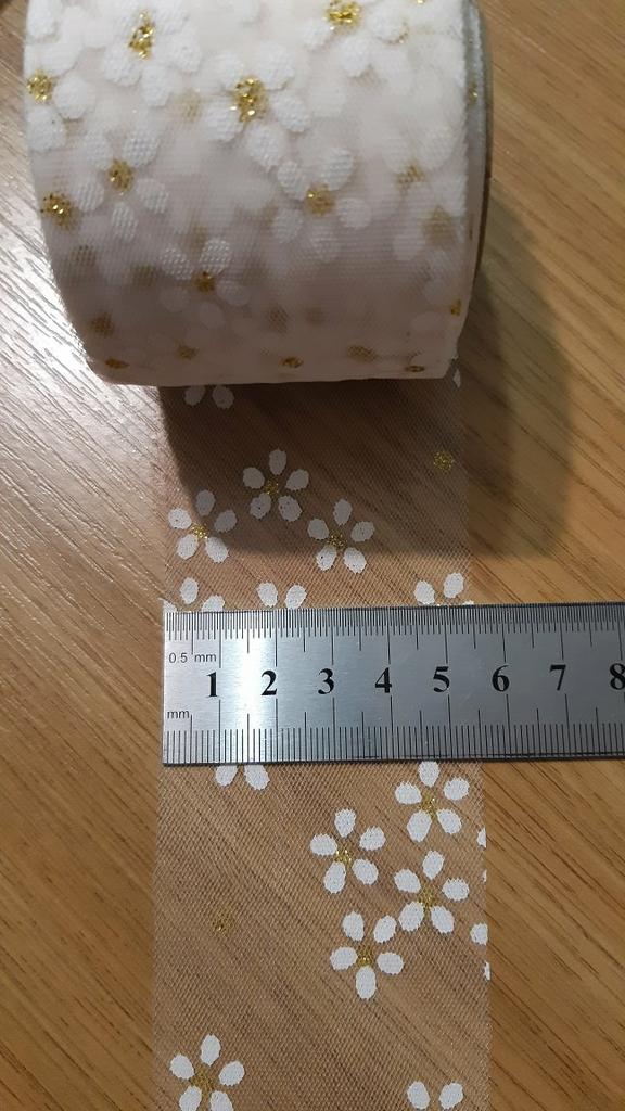 Piękna wstążka tiulowa, tiul miękki. Szerokość faktycznie wynosi 5,5 cm.