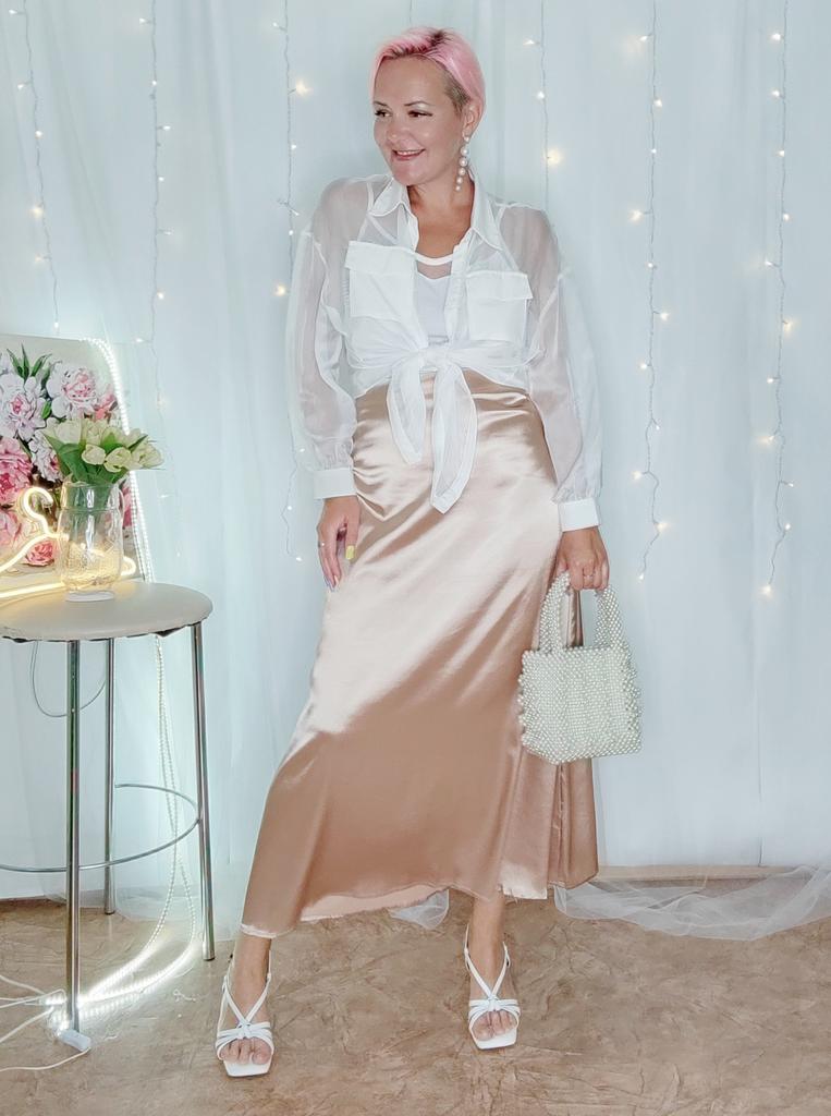 Spódnica idealnie układa się w talii, jest jednak za długa. Ale możesz to skrócić. 🥰