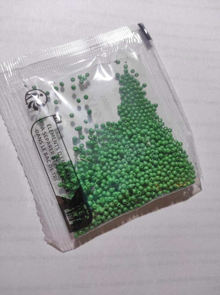 Miało mieć 2 mm średnicy. Koraliki są wielkości ziarenka gorczycy. Niewidoczne. Poproszę o zwrot pieniędzy.