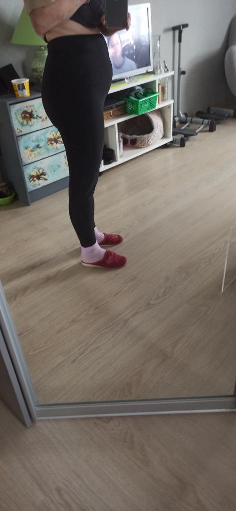 Spodnie są cienkie. Uszyte starannie. Zamówiłam XL do OB 108 mając nadzieję, że będą obcisłe. Mógłby być o rozmiar mniejszy. Są za duże w brzuchu i talii, przez co zsuwają się w dół. Nie są tak wysokie jak na zdjęciu. Zakładam je i chodzę w nich, ale bez ćwiczeń w ogóle się nie pocę.