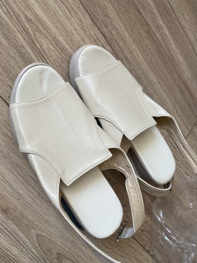 Sandały nie są białe, ale beżowe i reklamowane są jako białe