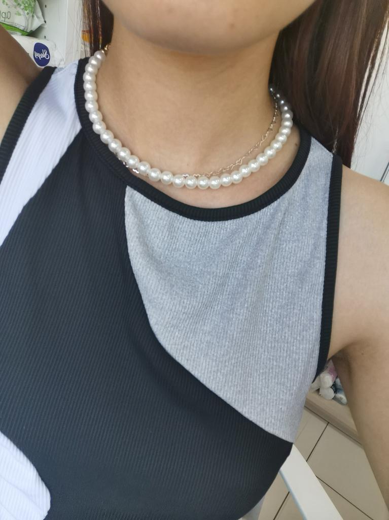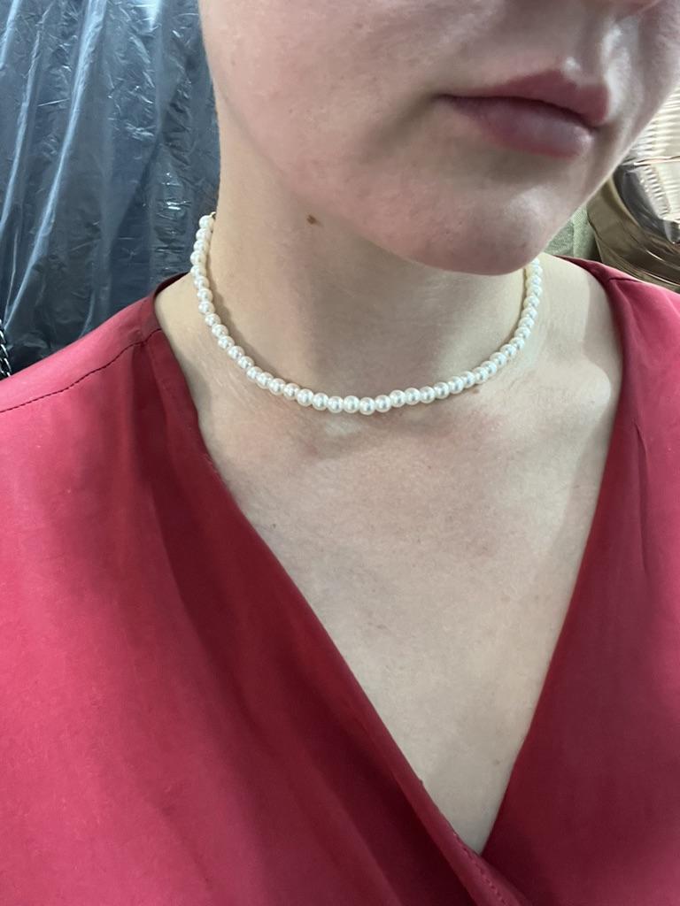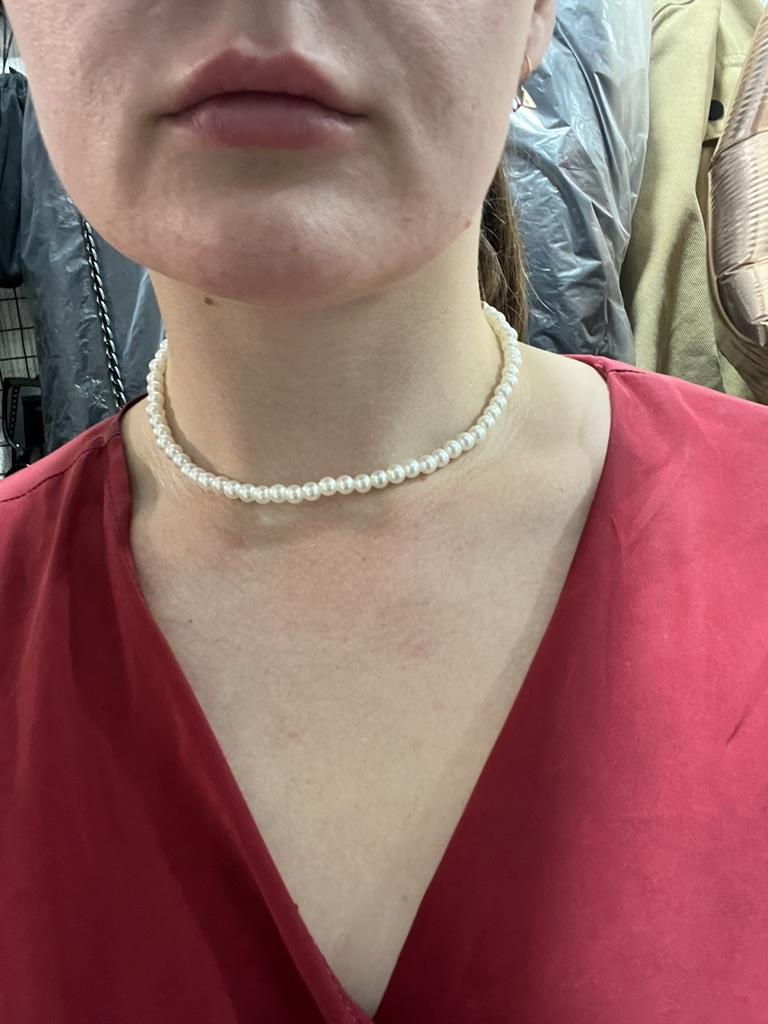 Jako choker to normalne, małe koraliki tuż pod szyją. Ci, którzy mają pełną szyję, będą mali. I tak wszystko mi pasuje. Dziękuję, życzę wszystkim powodzenia