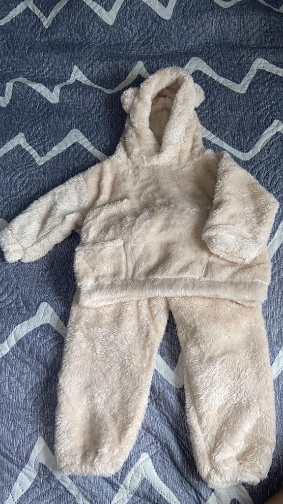 Jakie słodkie 🥹 Kiedy go rozpakowałem, myślałem, że będzie super duży, ale tak naprawdę nie jest idealny dla INAYA! Wzięłam 12 miesięcy, ona ma 11 miesięcy, ma 80 cm. Jest super puszysty, mięciutki, przyjemny 🥰 osobiście chcę takiego samego dla siebie 😂 Na chłodne poranki w domu, na jesienne wyjścia szczerze mówiąc jest idealny trzyma ciepło 🥰✨ Jestem zbyt fanem!