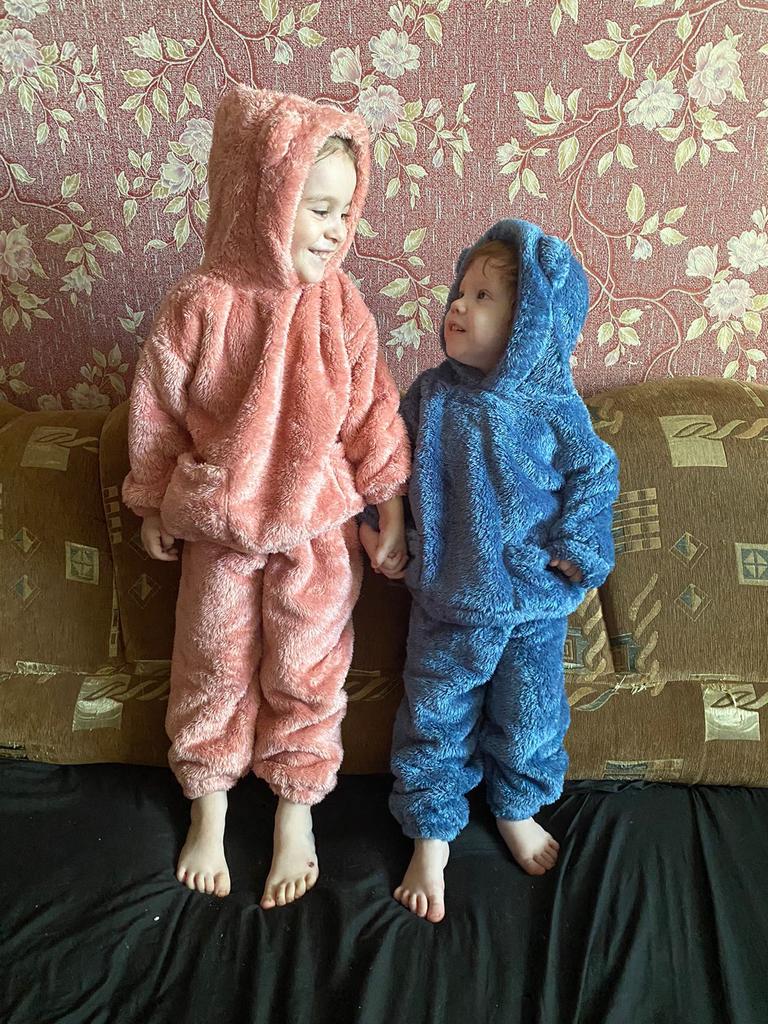 Wszystko pasuje do zdjęcia. Kombinezon jest bardzo miękki, przyjemny w dotyku, ciepły. Bardzo fajne, świetnie pasują.