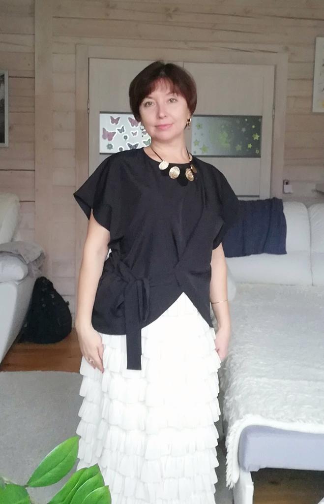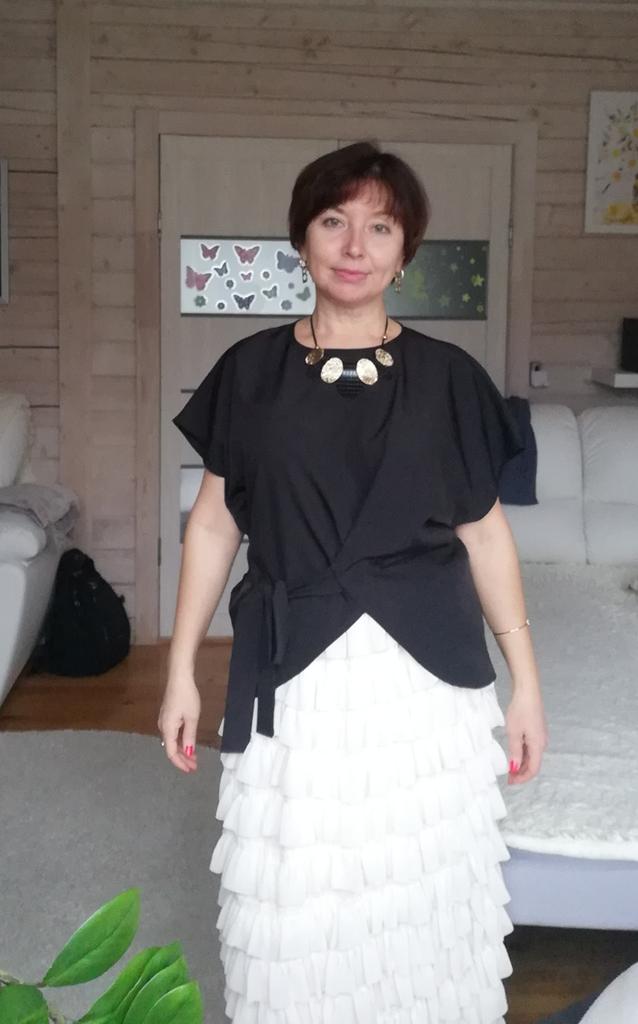 Ma nieco dziwny kształt, tkanina jest lekka. Jeszcze nie wiem, w co się ubrać.
