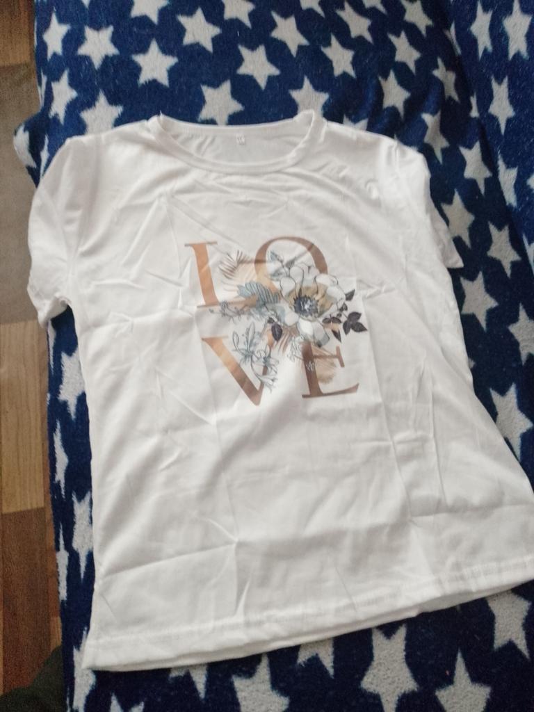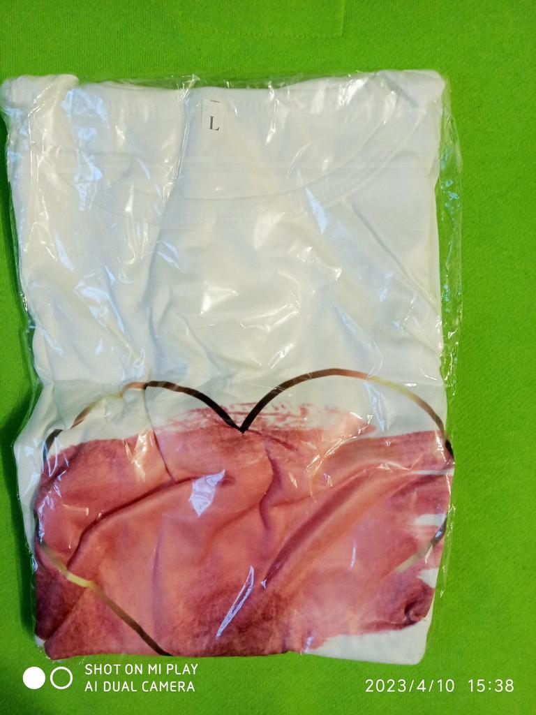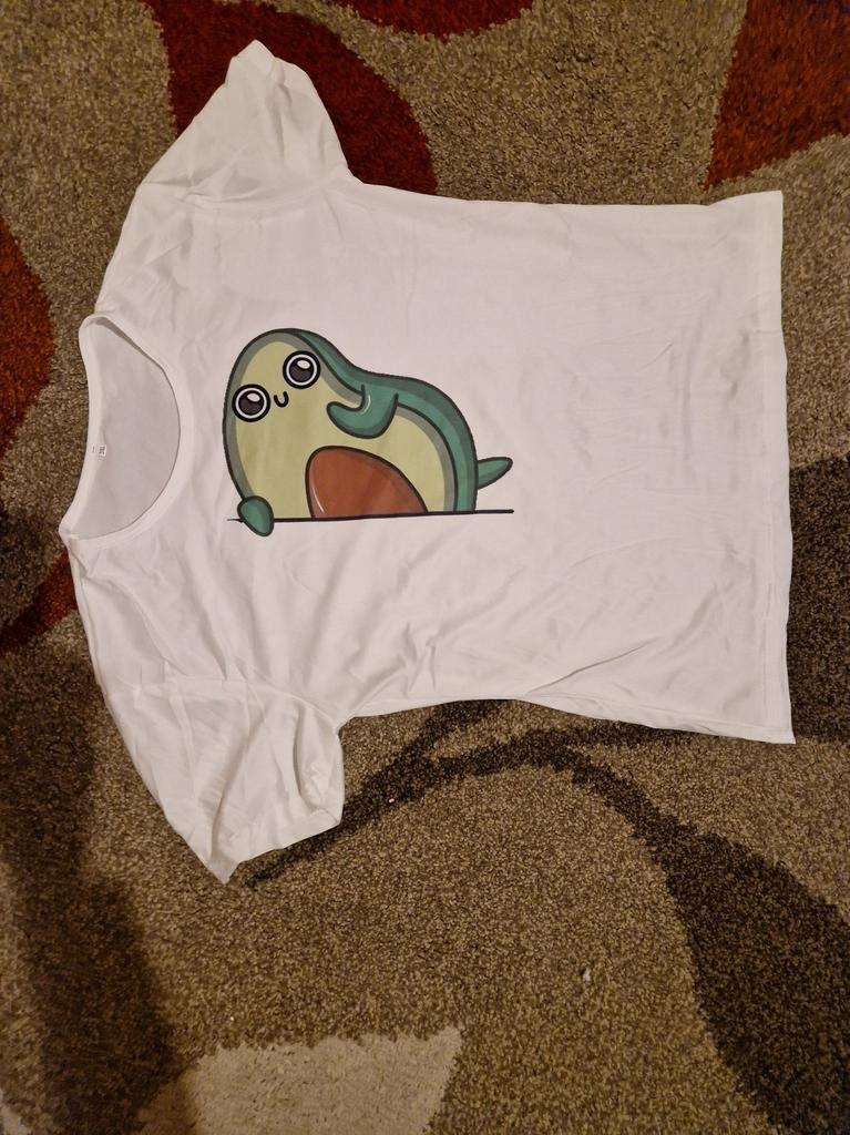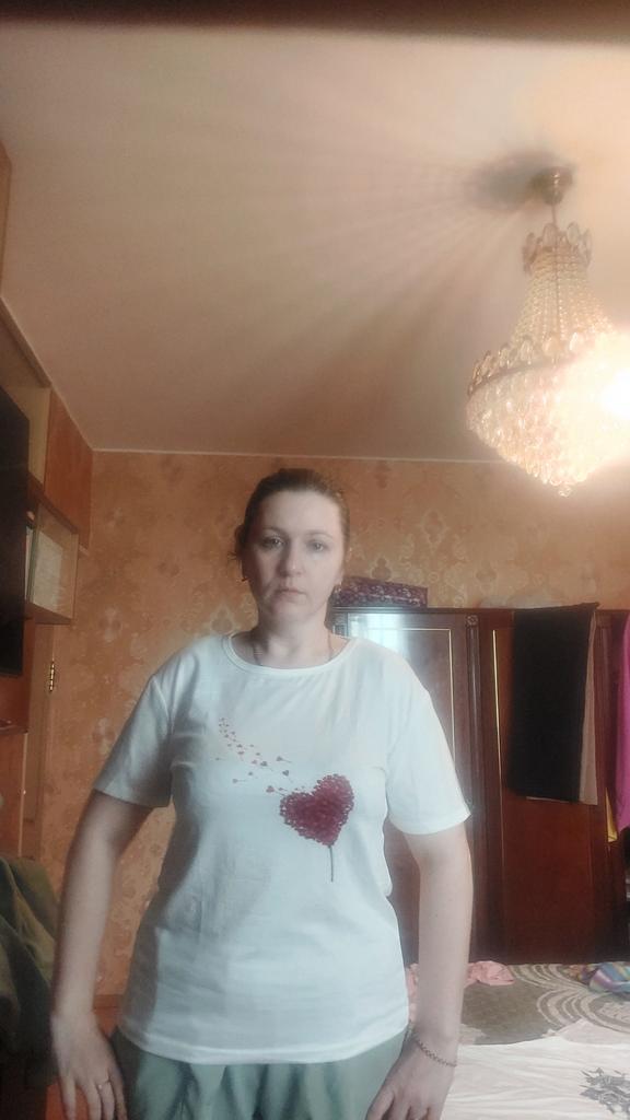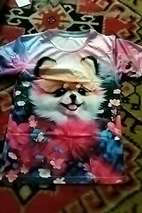 Koszulka jest urocza. Obraz jest naklejany na tkaninę, a nie na naklejkę. Kolor jest jasny. Koszulka jest syntetyczna, ale miękka i przyjemna w dotyku. Dla rozmiaru 46 wziąłem T-shirt 3XL. Bałam się, że nie będzie za duży. Ale wszystko pasuje, koszulka jest luźna, ale nie wygląda na dużą. Dla tych, którzy chcą nosić rajstopy, należy wziąć rozmiar mniejszy. Powodem, dla którego odjęłam 1 gwiazdkę, są rękawy. Na zdjęciu wygląda jak t-shirt z rękawami z klapami, ale w rzeczywistości jest to zwykły t-shirt z regularnymi rękawami. Jej wygląd jest nieco prostszy niż na zdjęciu. Generalnie jestem zadowolony z zakupu. polecam