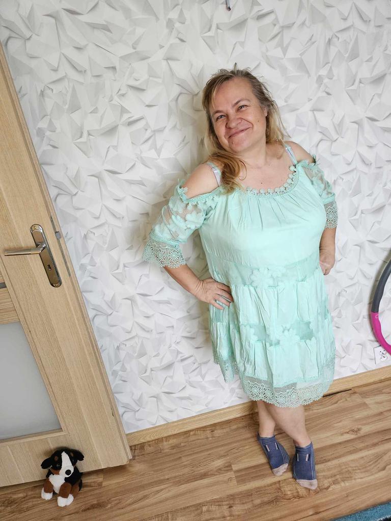Sukienka bardzo fajna. Trochę skróciłam ramiączka. Bardzo delikatny miły materiał.