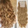 Syntetyczne długie faliste syntetyczne doczepiane włosy 4 sztuk/zestaw doczepiane włosy na klips ciemnobrązowy ombre miodowy blond grube treski