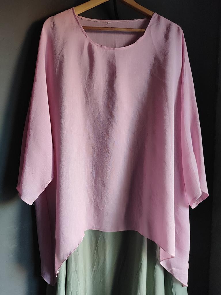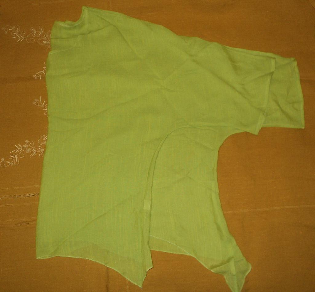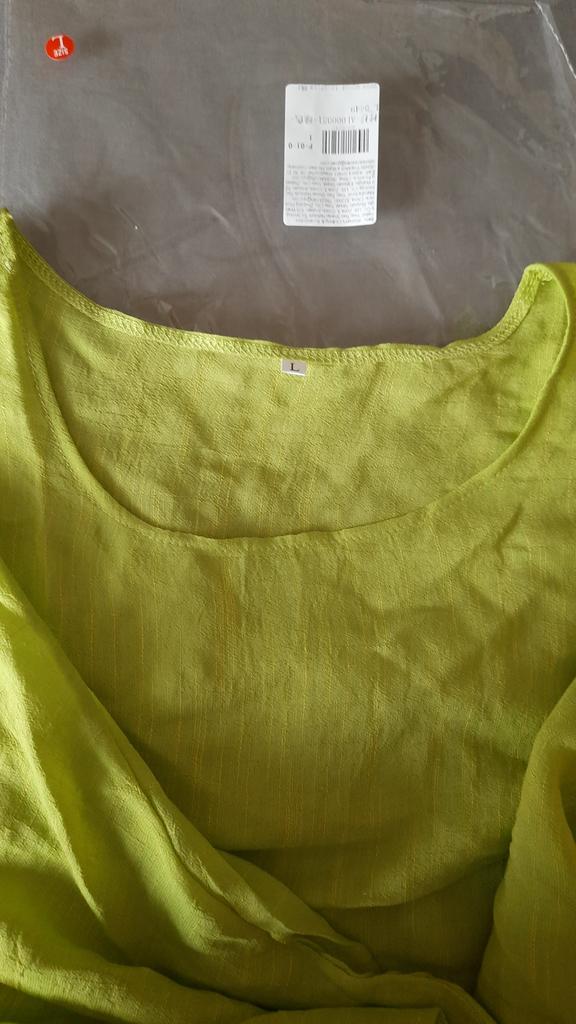 Materiał i kolor różnią się od zdjęcia! Wygląda jak cienka zasłonka. Dół rękawów wymaga poprawki, ponieważ końce górnych szwów odstają.