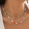 Prosta moda wielokolorowy beżowy koralik list naszyjnik w stylu Retro blokada naszyjnik biżuteria prezent dla kobiet