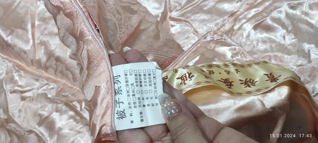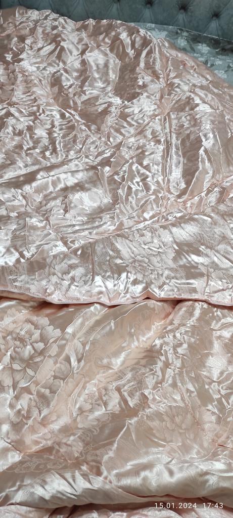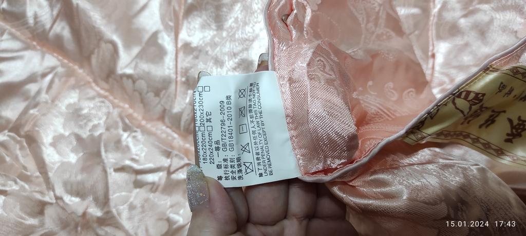 Szczerze mówiąc waży 3 kg, ale jest bardzo cienki, wypełniacz w środku jest nierównomiernie rozłożony, a na krawędziach są puste przestrzenie. Piękny, jasny materiał, ale bardzo śliski, palce chwytają tylko raz lub dwa razy.