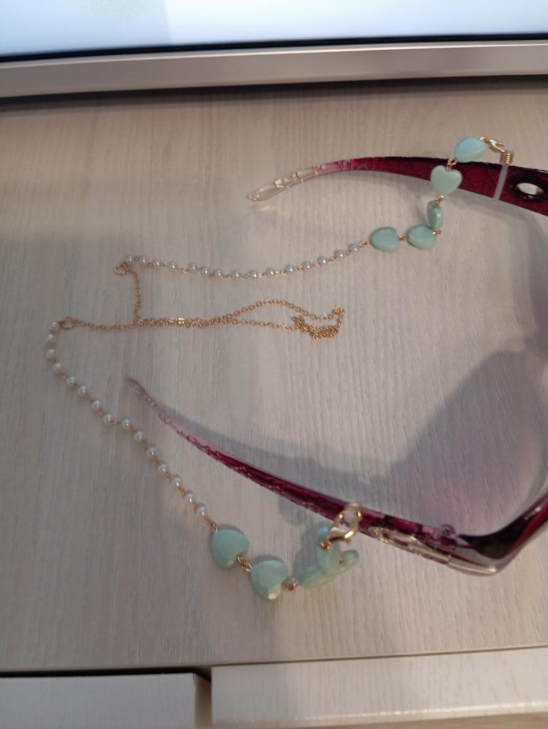 Koraliki są matowe, łańcuszek słaby, wzięłam go do okularów przeciwsłonecznych, myślę, że nie wytrzyma