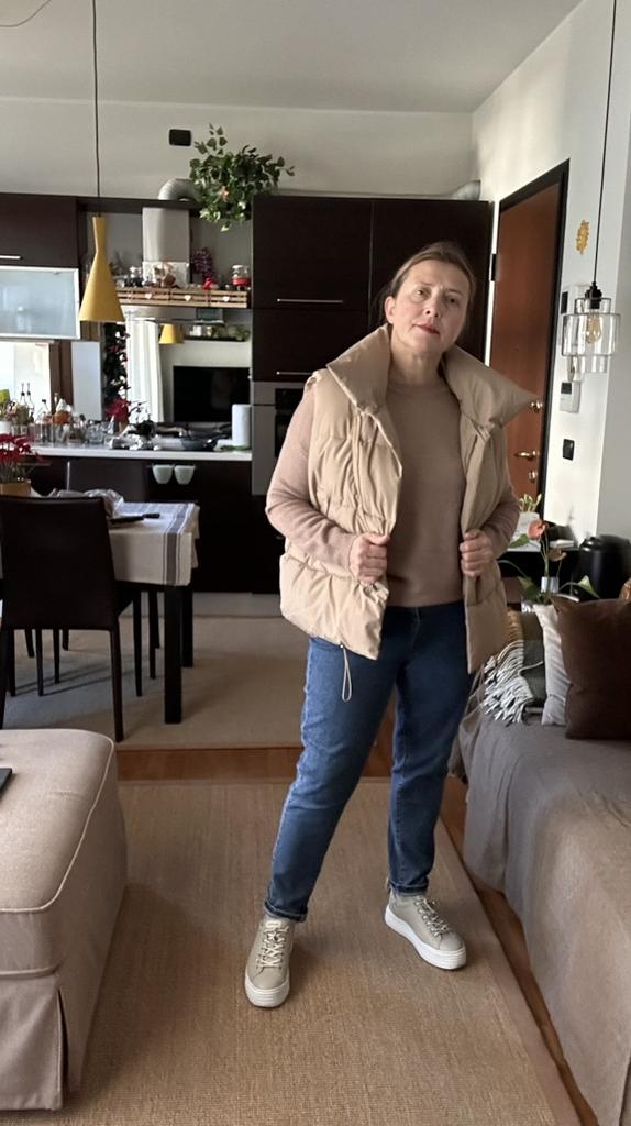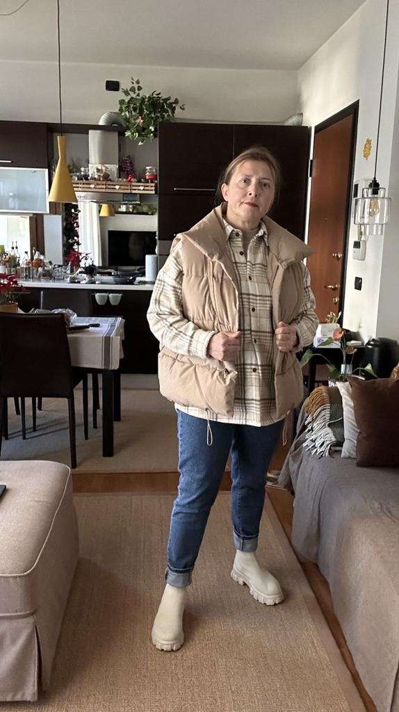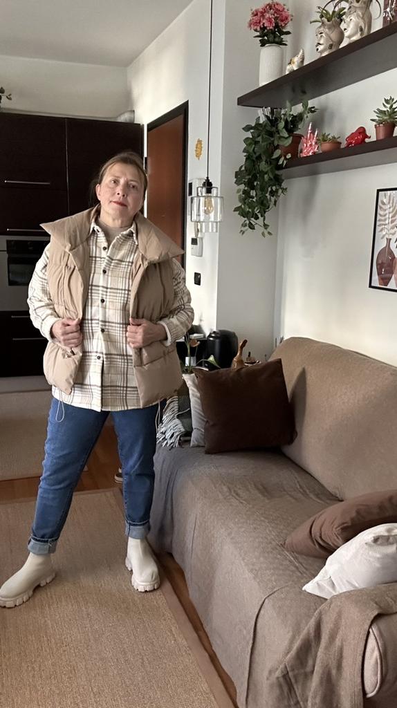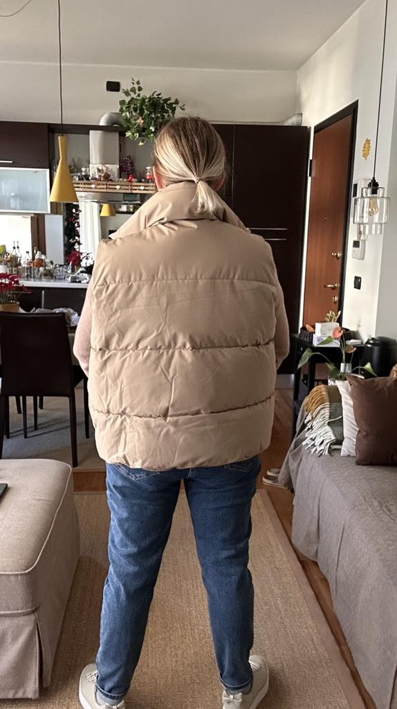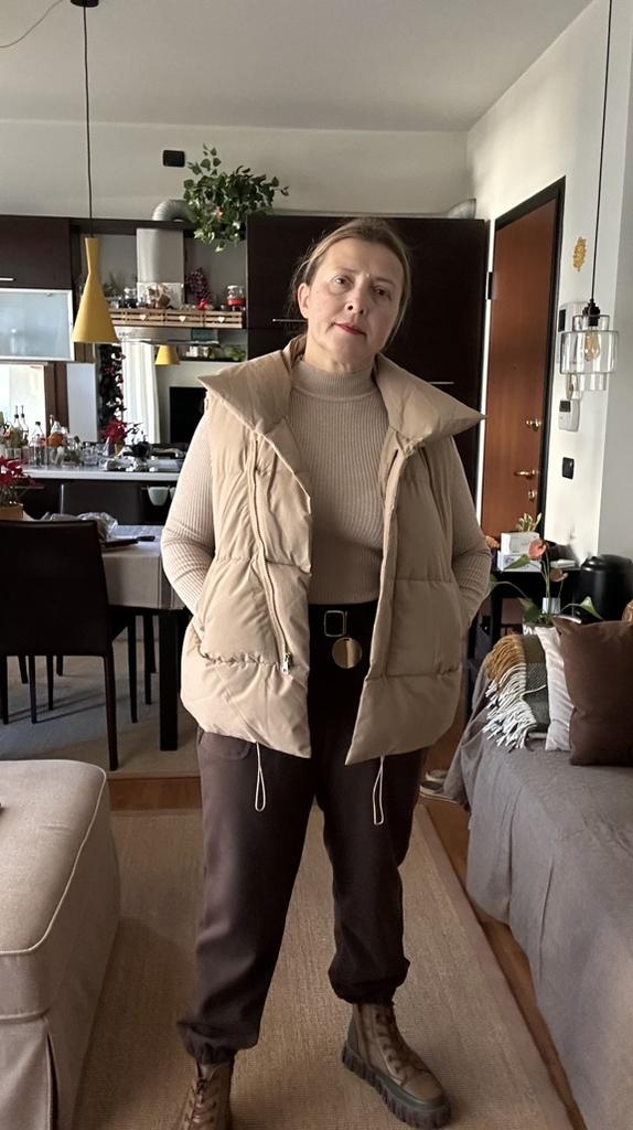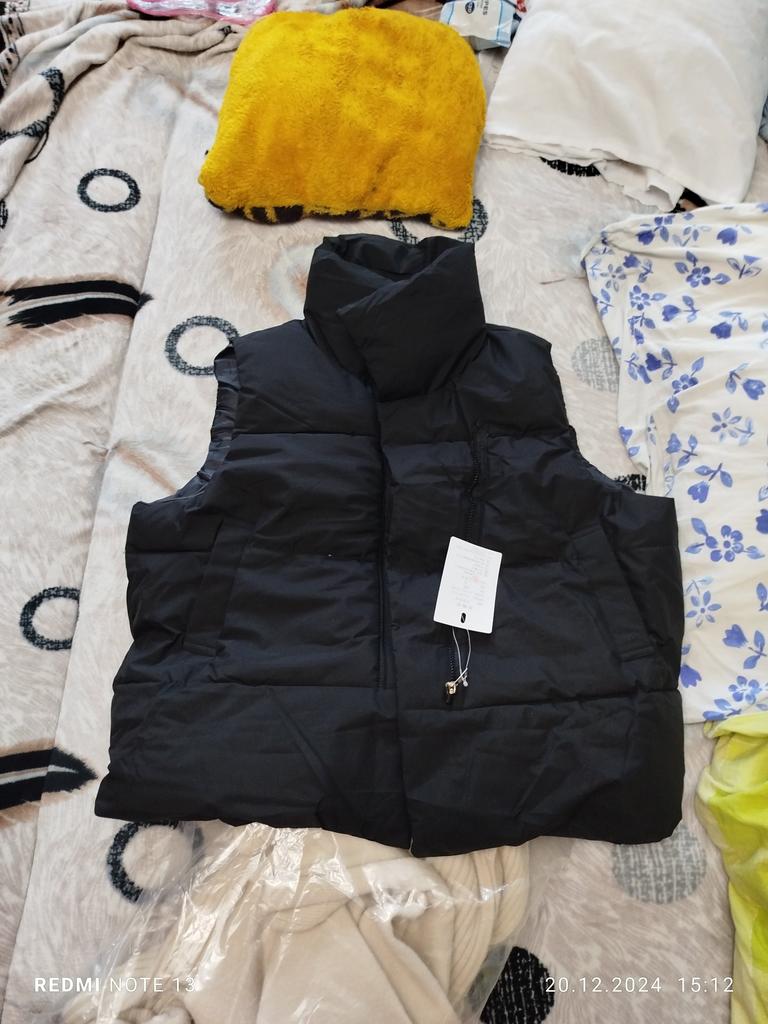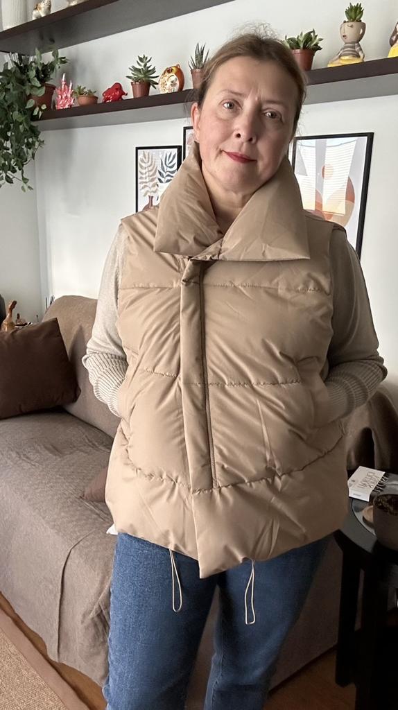 Kamizelka jest bardzo piękna, lekka, ładnie, równomiernie wypełniona, zamówiłam rozmiar L i nie pomyliłam się, można śmiało założyć ciepły sweterek lub coś ciepłego.Polecam sprzedawcę i kamizelkę, dobra robota!😍👍