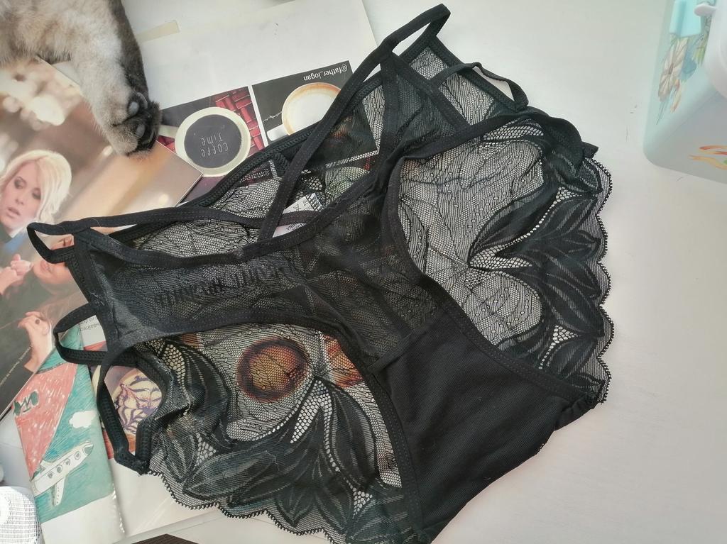 DKGEA 3 szt. Czarna seksowna bielizna damska majtki ze średnim stanem koronkowe figi przezroczyste kalesony