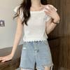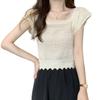 Damskie topy Jednokolorowy ażurowy słodki T-shirt z krótkim rękawem i kwadratowym dekoltem