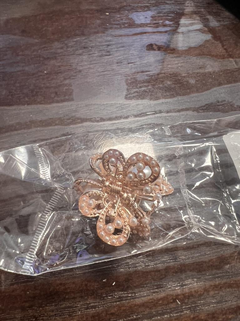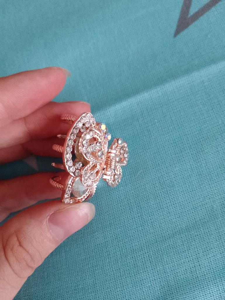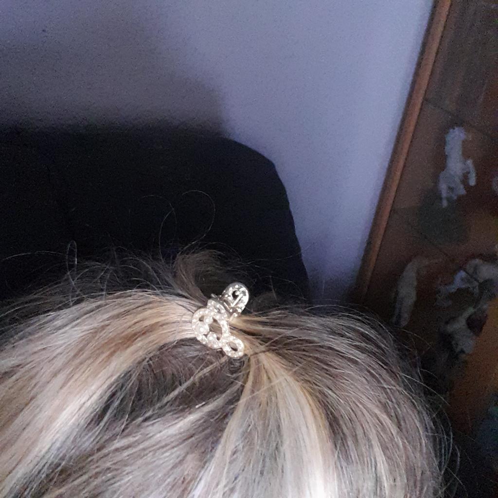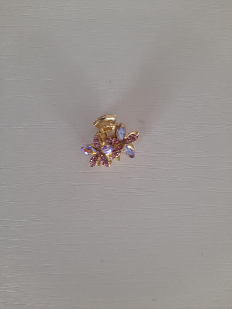 Ładna mała spinka do włosów. Żelazo. Po jednej stronie znajdują się 3 zęby (uchwyt), a po drugiej 2 zęby.