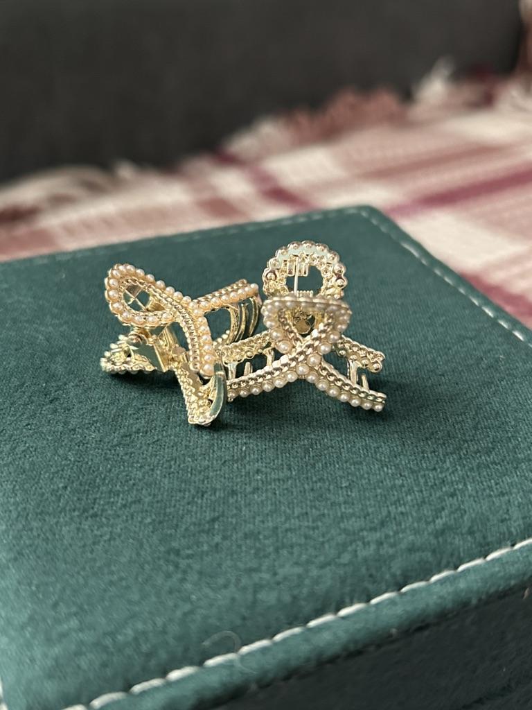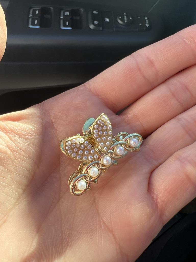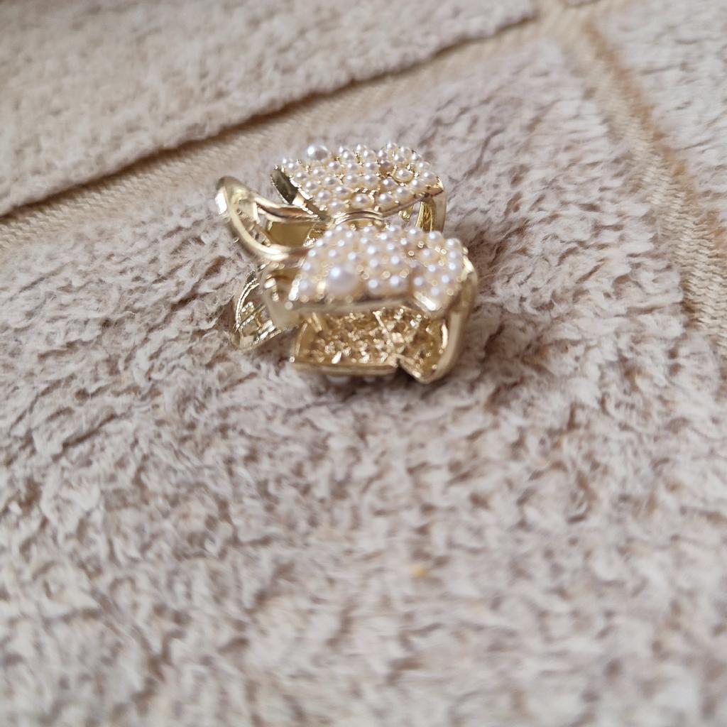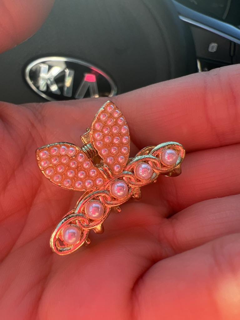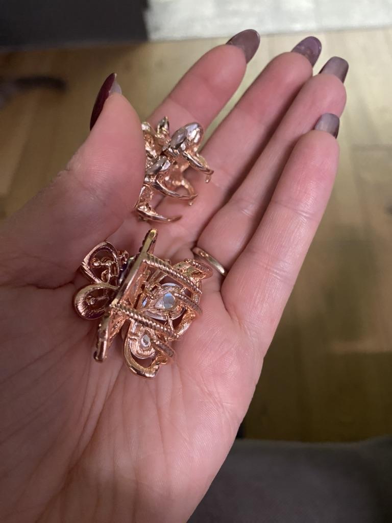 Ładna mała spinka do włosów. Żelazo. Po jednej stronie znajdują się 3 zęby (uchwyt), a po drugiej 2 zęby.