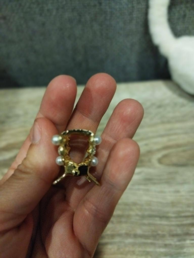 Jest więc bardzo źle odlany, klej mocujący kamienie wychodzi po przeciwnej stronie i na krawędziach kamienia grubą warstwą, w dodatku jest też asymetryczny, bardzo nie podoba mi się to, że sprzedawca przysyła takie produkty