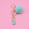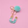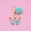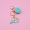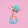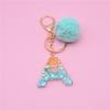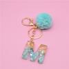 26 inicjały litera klucz wisiorek z zielonym puszystym pomponem moda dziewczęca torebka brokat gradientowa żywica alfabet brelok Charms