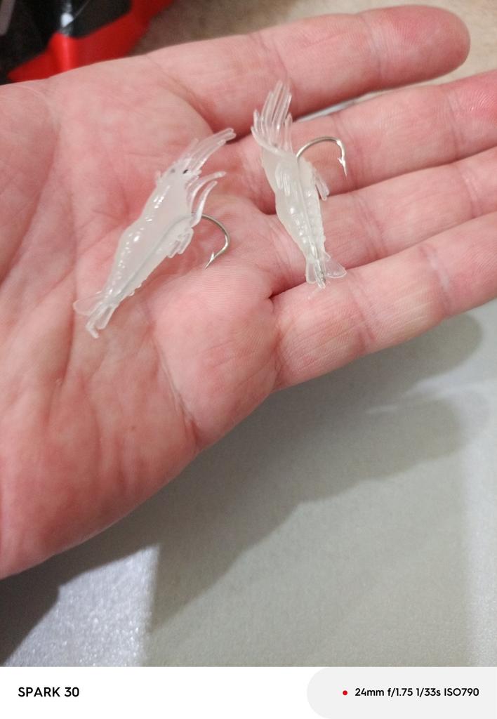 Pachnące, elastyczne krewetki. Haczyki są trochę za duże. Ale ogólnie jestem zadowolony z zakupu.