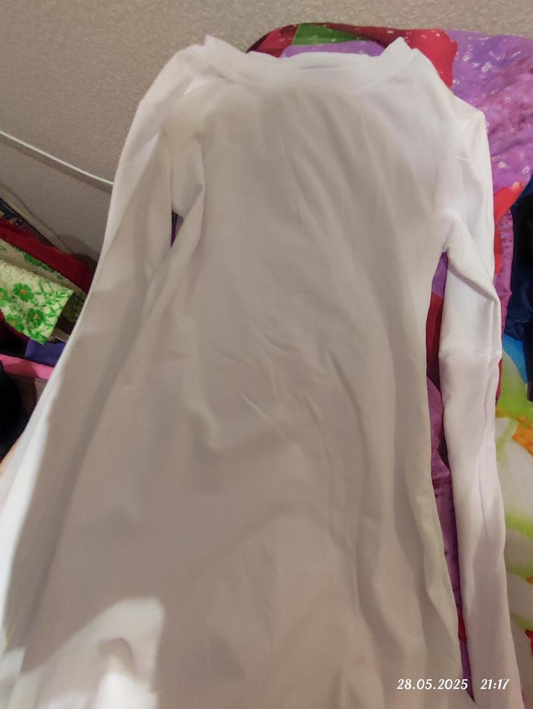 Noszę rozmiar bluzki 44-46. Bluzka jest ledwo dopasowana, mało wygodna. Jest bardzo ciasno. Ale rękawy są tak długie, jak się da. Jeśli rozciągniesz je do pożądanej długości, utworzą się liczne fałdy. Kolor i jakość materiału są doskonałe.
