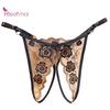 Majtki damskie krocza regulowany pasek Hollow Out Slutty cienkie otwarte rozciągliwe przezroczyste koronkowe hafty w kwiaty