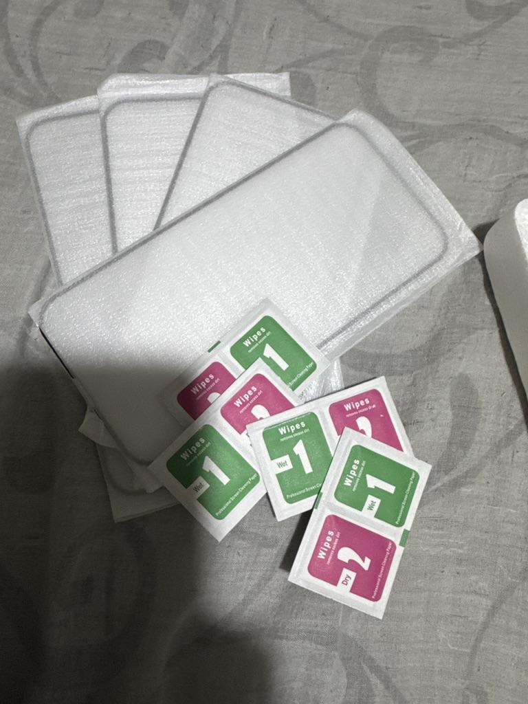Przyszedł tylko jeden pakiecik chusteczek, a miały być 4. A czarny kontur na szkle jest za duży dla iPhone'a 11