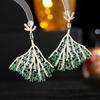 Modne kolczyki ze srebra próby 925 dla dziewcząt, długie akcesoria, lśniąca cyrkonia, zielony liść, wachlarzowate kolczyki wiszące, biżuteria damska, prezent