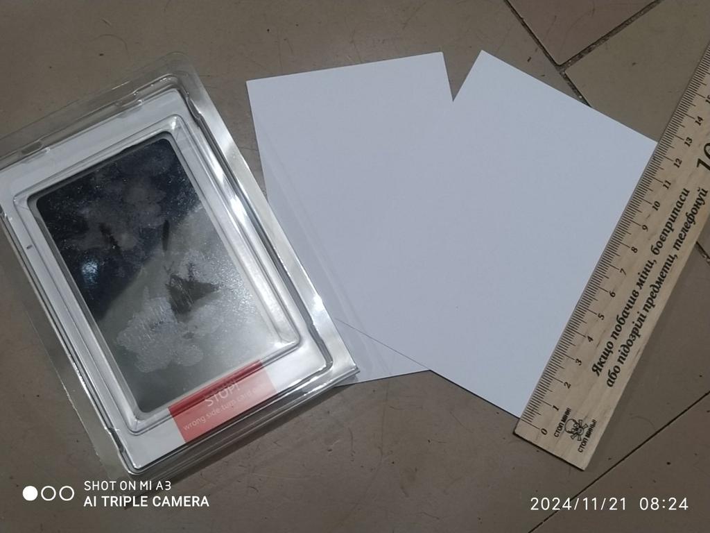 02.11-19.11 nie ma żadnych instrukcji. Połóż papier w miejscu oznaczonym jako „stop” i połóż łapę po drugiej stronie. Arkusz 12,5x8 cm
