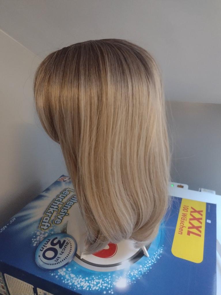 Świetna peruka! dobra długość Cięcie. kolor z pasmami. Tylko traci dużo włosów. Nie wygląda sztucznie jak inne, które świecą tak mocno, że widać, że nie jest prawdziwe. Potem muszę coś przetestować, żeby sprawdzić, czy z czasem nie stanie się słomkowy, jak inne, które otrzymałem. Ale poza tym jestem bardzo miło zaskoczony! Świetne w tej cenie!!