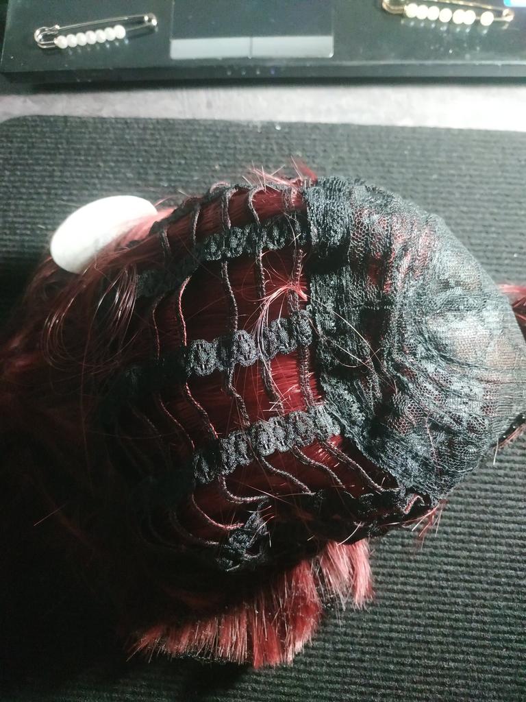 Peruka też trochę pasuje. Mam wrażenie, że ten jest trochę krótszy i ma mniej włosów. W przeciwnym razie dobrze pasuje pod względem rozmiaru i koloru do pasm.